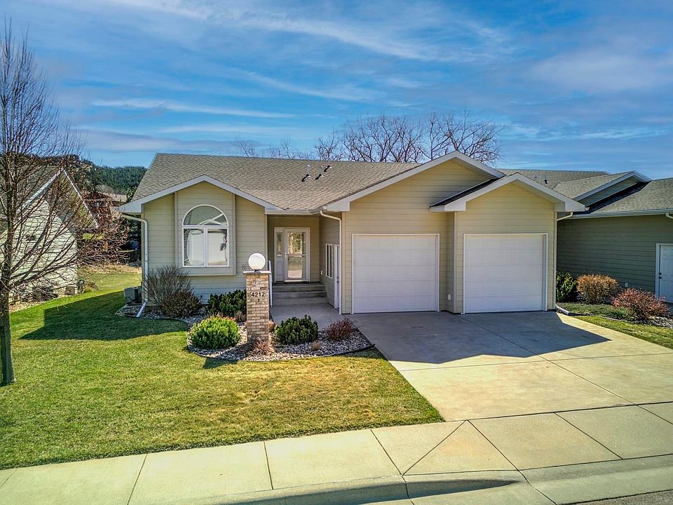 Welcome to carefree living at the Carmel Point Townhome community! This lovely ranch style home has so much to offer & is conveniently located in SW Rapid City minutes to the Black Hills, health care, top rated schools, walking paths, golf, restaurants, the community swimming pool & party house! This light & bright home features 3 main level bedrooms, 2 baths & at “the hub” of the house is a spacious living room, open to the dining area, the well-planned kitchen which has a walk in pantry, desk area,& nearby laundry & garage access. The covered, East facing, deck is located off the dining room with open views. The large master ensuite includes a walk-in closet, jetted tub, double sinks, shower, linen & private toilet. The garden level bsmt features a 4th bedroom, 3rd bath, a huge family room w/ fireplace, an exercise area, wet bar & space for your hobbies plus lots of storage. The HOA provides Mowing, snow removal, yard fertilization, yard watering & Sprinklers maintenance.