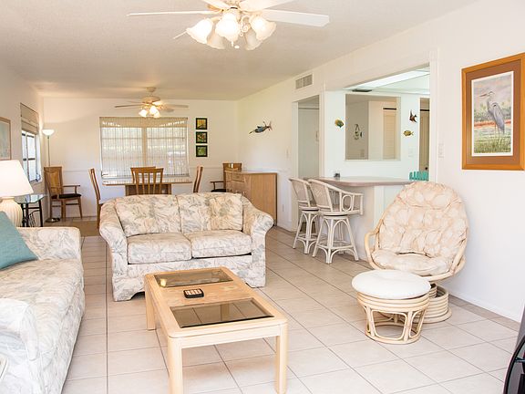 This canal home has access to Palma Sola Bay. The canal is often visited by manatee. It is an end unit with lots of light. There are actually two bathrooms one is an ensuite. It has and enclosed sunroom, remodeled kitchen, bathroom and floors, electrical update, and dock. The home is completely furnished and move in ready. Please call (416) 565-0918