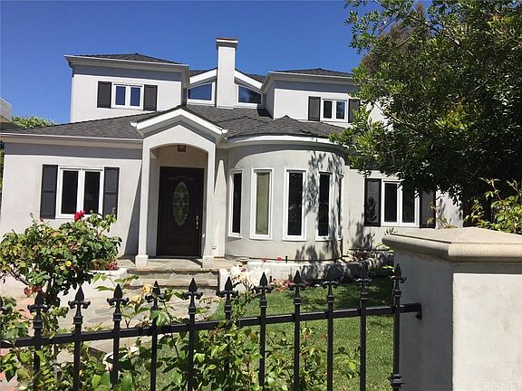 Incredible South of the Boulevard Lease! Gated two story Traditional close to trendy shops & restaurants along Ventura Boulevard. The fabulous 4 bedroom 3.5 bath home is enhanced by wood floors, French doors, open concept floor plan, living room with decorative fireplace, office/den, formal dining room with barrel ceiling, family room with fireplace, built-in entertainment center, & custom finishes, spacious center island kitchen with granite counters, custom cabinetry, stainless appliances & subway tile back splash. Gorgeous master with dual walk-in closets, fireplace, balcony & luxurious bath with spa tub. Covered patio & grassy front & rear yards.