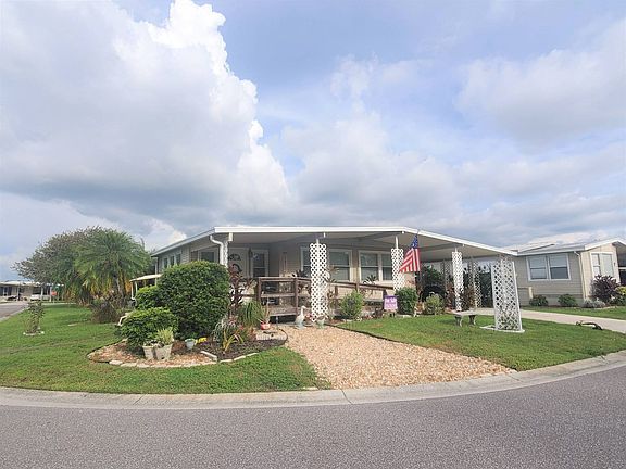 Just Listed $74,900 Furnished Come take a tour of this lovely 1979 Fleetwood manufactured home. The home is situated on a corner lot with nice curb appeal. The home features a handicap accessible ramp, side driveway, carport, enclosed patio, huge storage shed, and a back screened lanai. Entering the home from the carport you enter the enclosed patio area. The owners have it set up as a living area/ man cave. The storage shed hosts the washer, dryer, wet sink and refrigerator. Tons of room for your beach gear, bikes, and holiday decorations. The back screened lanai is a perfect spot to relax in the morning with a hot cup of coffee while you feel the Florida breeze. Updated kitchen with beautiful wood cabinets, laminate countertops, and white appliances. This kitchen has plenty of cabinets and counterspace. Dining room and living room are open. The dining room has a large built-in hutch giving you extra storage space and a spot to display your décor. Off of the living room is the enclosed Florida room with access to the handicap ramp. This room is currently set up as an office, but the options are endless. Roomy guest bedroom with a nice sized closet. Guest bathroom has a tub/shower combo with a sliding glass door, large vanity and built-in wall cabinets. The large master bedroom accommodates a king-sized bed, dressers and nightstands comfortably. This room also features a walk-in closet and an ensuite bathroom with a step-in shower. Laminate flooring in the dining room, living room, side Florida room, hallway and bedrooms. New H20 Heater 2022. Don't miss your chance on this well-maintained Florida home! Call today! Colony Cove is an age qualified (55+) five-star resort community of manufactured / mobile homes. The "Cove" boasts 5 clubhouses, 6 heated pools, a riverfront pavilion and private fishing pier, a private marina, a fenced dog park (very pet friendly), tennis, shuffleboard, new pickleball courts, 2 new fitness rooms, 24 hour patrol, clubs for every interest, and much more. There are daily planned activities throughout the park. Bottom line, if you get bored here, it's your own fault!! The lot rent in Colony Cove is based on the homes' location. While the monthly rent may not be the lowest around, it's by far the best value for the money. Not only does the monthly rent cover all of the amenities of the community listed above, it also covers almost all other monthly expenses such as; water, sewer, trash pickup, all property taxes, lawn maintenance. . .pretty much every monthly expense except electricity and internet. The current lot rent on this home is estimated at $932.94 per month. All listing information given to us is considered appropriate and reliable but always recommend Home Inspections by independent companies who have a background and thorough understanding of manufactured homes. We cannot guarantee the accuracy of information given to us or the condition of the home. Lot rents are determined by the community office not our company.