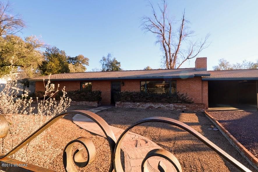 Spacious 1952 three bedroom two bath home on a giant .33 ac lot! Wonderful view of the Catalinas from the living room picture window of this classic red brick home. Ready for your remodeling touches, or you could move right in. Ceramic tile throughout, flagstone fireplace in the living room, formal dining room, kitchen with loads of storage, spacious bedrooms... and huge double backyard, walled, with covered patio, built in brick fireplace; this enormous yard is almost a blank canvas for your gardening dreams, with room for kids playsets, and an extra yard for your dogs! (There's a dogdoor already in place). This is a wonderful family-sized home in a very convenient midtown location, minutes to El Con, and to UA main campus. Don't miss this o