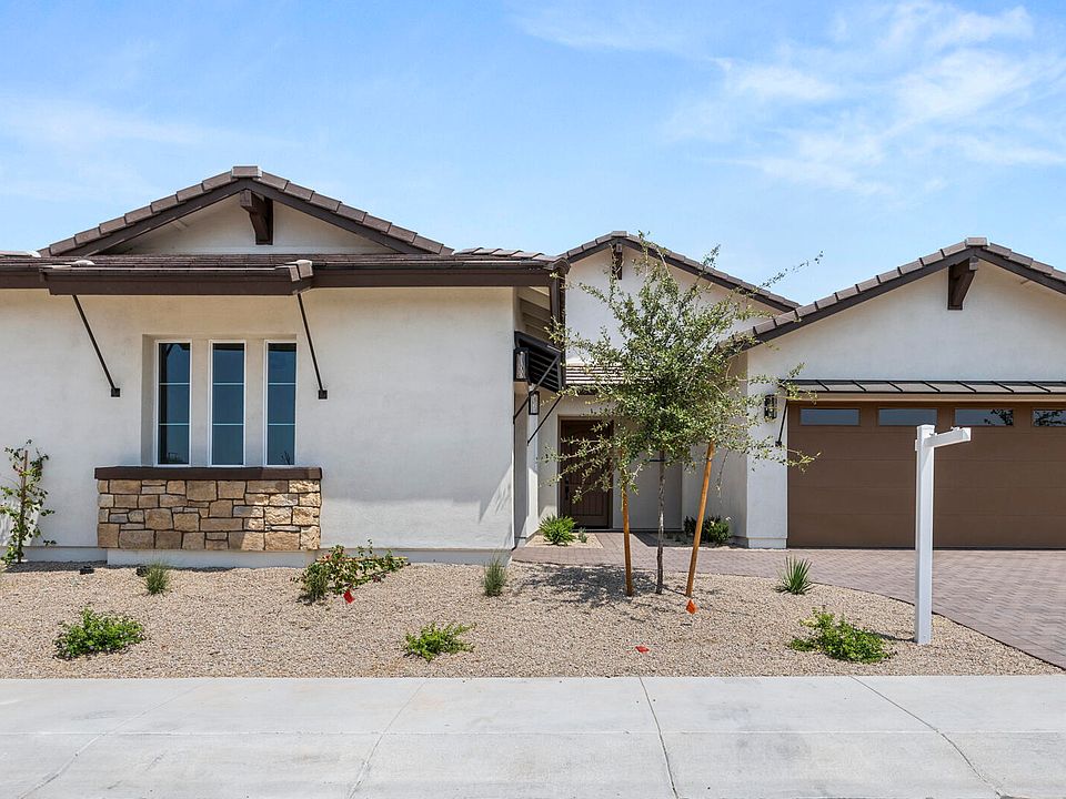 Quick Move-in Ready Home! Peak View is an intimate gated enclave of luxury single-level homes offering modern home designs by Cachet Homes. This Plan Two home is situated on a North/South lot and features 3,159 SF, 3 bedrooms, 3.5 baths, a 3-car garage, den, and an open-concept Great room and double island at the Kitchen. Additional upgrades include low maintenance desert front yard landscaping, Coastal painted and stained cabinets, quartz countertops, engineered wood floors, upgraded lighting package, and more!