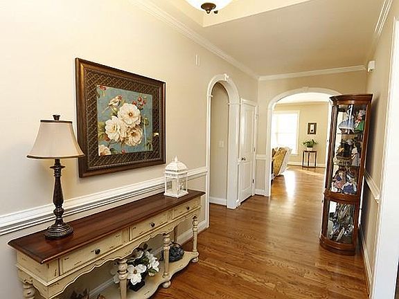 Beautiful custom-built home w/4 bedrooms & 3 full bths ! Hardwood floors,arched doorways,trey & coffered ceilings,wainscoting, & granite counters. SS appliances w/gas cooktop,built-in oven & microwave, lg WI pantry SPACIOUS 4th BDRM, bonus, & full bath UPSTAIRS plus huge walk-in storage for future expansion. Beautiful Flagstone covered porch steps down to patio that leads to fenced back yard. Energy Star Qualified home w/sealed crawlspace & tankless wtr heater.Walk to greenway trails
