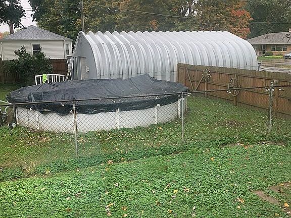 5 bedroom full kitchen dinning room and living room above ground pool and large garage in back of property 3 car garage attached move in ready