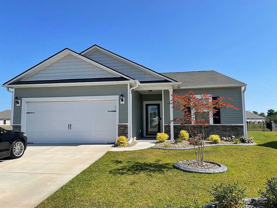 This beautiful 4 bedroom home is located in the desirable Berkshire Forest Community. Berkshire Forest is located within 8 miles of the beautiful SC beaches! As well as shopping, dining, family entertainment, and nightlife. Enjoy a day in your large backyard/screened in patio or enjoy the large number of amenities that Berkshire Forest has to offer. Outdoor pools, lazy river, splash pad, playgrounds, basketball courts, tennis courts, bocce ball, clubhouse, picnic area, and a gym. This home features 4 bedrooms, 2 bathrooms, and a large open living space. Every bedroom has a walk in closet and ceiling fan. Granite counter tops, stainless steel appliances, laminate flooring, split bedroom floorplan, and comes with a ring doorbell. Pets will be considered with approval of homeowner. Don't miss out on this home as it will go quickly!