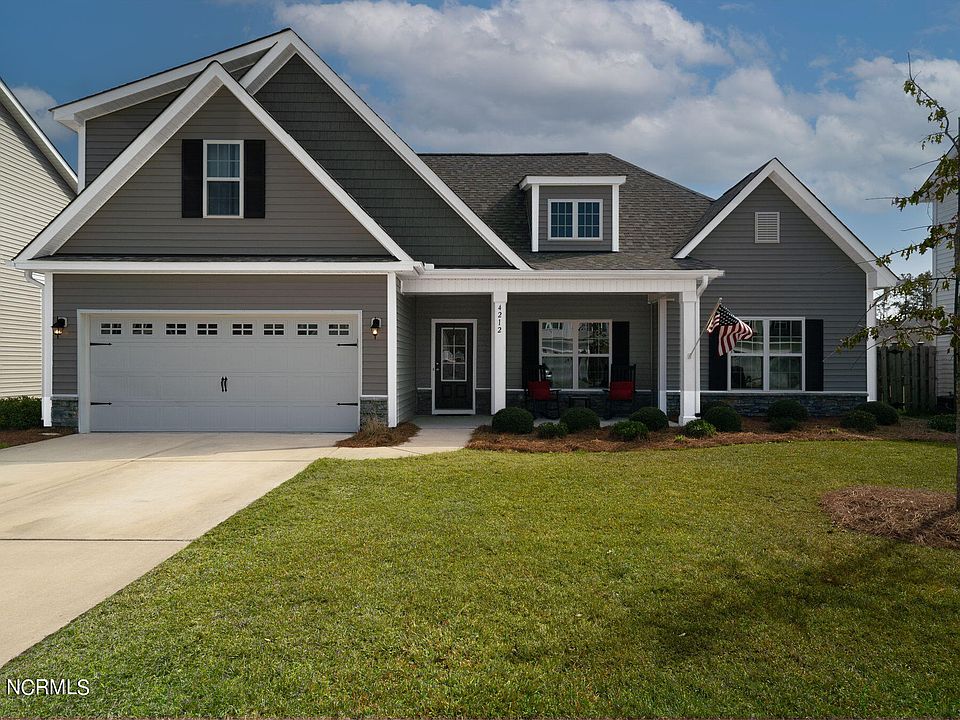 Be ready to be impressed as you drive up to 4212 Saltworks Lane.This truly turnkey house has great curb appeal with low maintenance siding and stone accents plus a rocking chair front covered porch. Built in 2017 by American Homesmith ,this 'Poplar Grove' floor plan has almost 2000 sq ft, 4 bedrooms and 2 full bathrooms. Elegant custom window treatments on all of the 1st floor windows are included in the sale of the property. Tankless hot water heater, fireplace and range are all conveniently connected to natural gas. This home was designed for entertainment. The amazing kitchen is perfect for the chef at heart. It showcases built in blue tooth speakers, pantry, large kitchen island, quartz counter tops, tiled back splash, built in microwave and 3 ovens!! There is a 4 burner gas range with oven and then double wall ovens. Enjoy unwinding at the end of the day or bring your guests out back on the expansive covered back patio or relax under the beautiful pergola. The wired 8 x 10 shed is ideal for storing toys, lawn equipment, man cave or she-shed. The meticulous garage has epoxy coated floors & built in cabinets plus the garage fridge comes with house. Cape Landing is a natural gas community lined with sidewalks and has a playground for the little ones. Great location with easy access to I-40, 140, Cape Fear Community College North Campus & GE. Be in downtown Wilmington in just minutes for shopping, dining & entertainment. Just a short drive to the beautiful southeastern NC beaches.