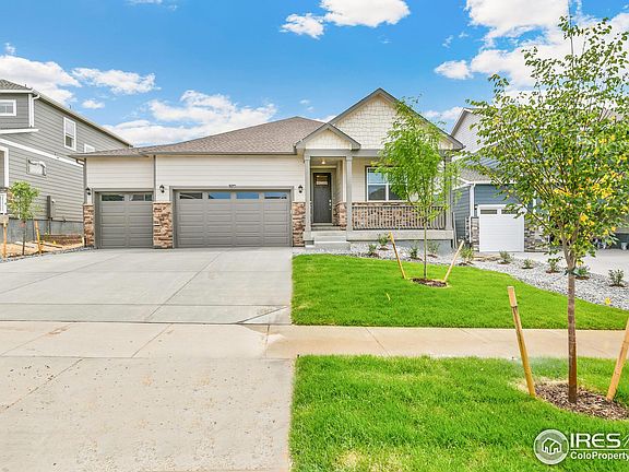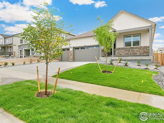 Stunning, open design ranch! Enjoy the Colorado evenings from the front porch or the covered patio! Beautiful contemporary gray cabinetry throughout, granite counters in Kitchen, walk in corner pantry, SS appliances and a large Island to gather around! Along with 9' ceilings, smart home technology, blinds, energy efficient tankless hot water heater and central air conditioning complete this home! Come live playfully at Lakeside Canyon, where there is miles of trails, a large central park with a playground and 2 dog parks! This location is a commuters dreams and allows for quick access to Longmont, Firestone, Frederick, and Mead. ***Estimated Delivery Date: March. Photos are representative and not of actual property***