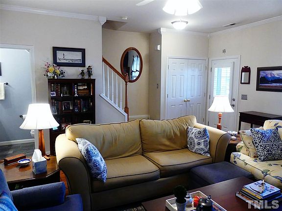 Fantastic 3-bedroom town home at wonderful north Raleigh location. Beautiful large kitchen with pantry & tons of natural light, opens to breakfast room & family room with gas logs, crown molding, spacious closet, & hardwoods. Big master bedroom upstairs with large walk-in closet & gorgeous bath & 2 more bedrooms & another full bathroom upstairs. Front porch & large back patio with extendable awning plus storage shed. Backs up to trees. Easy access to Hwy 70 for downtown or to RDU/RTP.