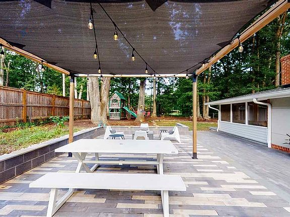 MID CENTURY MOD with TONS of CHARACTER. Renovations & addition in 1993 by architect Walter Davis included an owners suite with a vaulted ceiling, stacked windows, walk in closet, screened porch/deck & ensuite bathroom with marble skylit shower! NEW COOL PATIO: sitting walls, mod pavers, integrated lighting, gas hookup for your firepit. Permitted custom shed w/electric, play structure. Stately trees, deep lot. This house is the perfect size & layout for work, school and creativity. Stellar neighborhood!