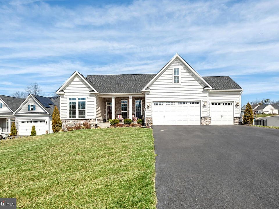 This home is like new with main-level living, and a fully finished basement. Over 4,200 Finished Sq. Ft. Open floor plan with 3 bedrooms on the main level and a bedroom suite downstairs. Gourmet kitchen with soft close drawers, double ovens, large center island with seating, and tons of cabinets. Oversized windows with transoms throughout. The living room has a gas fireplace and built-ins. Hardwood floors throughout the home. Custom paint and moldings throughout. Work from home? Check out the private office on the main level. The lower level has a game area, family room, yoga/workout room, bedroom with full bath en-suite, a workshop and separate storage room. The home has LED lighting throughout and sits on a Cul-de-sac lot that backs to trees. Security system and smart garage door openers alert you if outside doors are opened or closed. The fully fenced yard has extensive landscaping with apple trees, crepe myrtles and various plants that bloom from spring through fall. Enjoy the huge deck, with lots of seating, that leads to the custom stone patio. The garden is placed so it gets full sun, and the 8-zone irrigation system keeps everything lush and green during dry spells. The dry under-deck storage holds your lawn mower and gardening items. The oversized 3-car garage has plenty of storage above the doors and along the walls. House and tree uplighting gives the home a warm inviting feel at night. Main-level homes like this are rare and, with over $250K in upgrades, it really stands out. Note; The deck was built to add a roof, screens, and windows. A separate electrical line is added under the deck for additional deck and outdoor lighting or water feature.