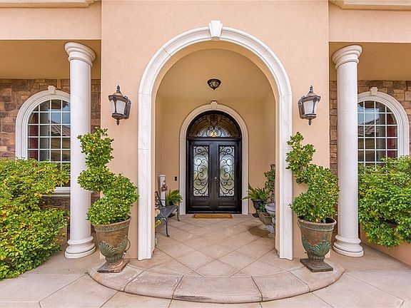Exceptional in every way, you will be in awe from the moment you walk through the huge, wrought iron accented doors. This beautiful home offers the highest level of craftsmanship. The open one story floor plan is designed to wow you every time to walk in. Custom windows and French doors bring natural light in. A gorgeous chefs kitchen with 2 sweeping islands open up to the oversized family room. Large walk in pantry, massive laundry room, travertine tile flooring throughout the house also accent this one of a kind gem. The master bedroom sets up like a luxury resort villa with direct access the pool through French doors. Dual shower heads, a freestanding soaking tub, oversized walk in closets also accent the master. The home boast an additional 4 en suite bedrooms located on other wing of home, resort style pool and spa, separate covered patios with BBQ and outdoor fireplace. 4 car garage, each side of garages includes additional room one currently being used as a gym.