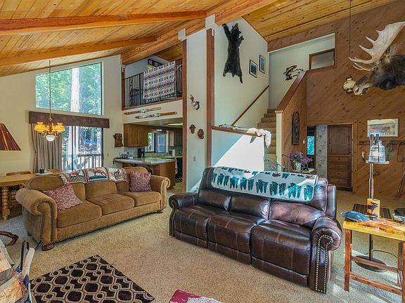 This may be the best cabin in Sierra Cedars if you are looking for a lodge style cabin in a lovely wooded area. This cabin has everything, large rooms, great room with river rock fireplace, wonderful kitchen, dining area, 2 car garage with overhead storage area, and even a sleeping loft. This is such a perfect cabin, maintained with so much care, and in a wonderful sub-division. All bedrooms are very large, with enough room for a large family or group. Outside decks on both front and back with lighting for evening get togethers. Owner has always taken care of anything that needs attention and although not new cabin has newer roof, cam lights were added, propane tank is newer, stamped concrete was added to the drive way area. Back deck was rebuilt a while ago and check out the way the under decking was finished. So much value, just the perfect cabin for full time, vacation time, or part time living. Only a couple miles from the Village of Shaver Lake and just a short drive to China Peak