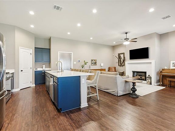 This charming and meticulously maintained 4-year-old home features an open and split floor plan with three spacious bedrooms and two bathrooms. The luxury vinyl plank flooring throughout ensures a stylish, durable, and carpet-free space. The living room boasts a cozy gas fireplace, perfect for relaxing evenings. The kitchen is a chef’s delight, equipped with stainless steel gas appliances and elegant quartz countertops. The primary suite offers a walk-through closet with direct access to the laundry room, adding a touch of convenience to your daily routine.