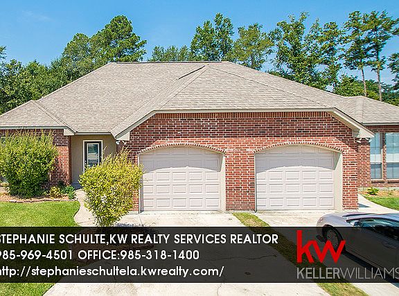 THIS PROPERTY PRESENTED TO YOU BY STEPHANIE SCHULTE, REALTOR WITH KELLER WILLIAMS REALTY SERVICES C:985-969-4501 O:985-318-1400..... Spacious Townhouse Well Maintained In Great Location. Open floorplan with Split Bedrooms plan. Gas fpl in Living, Crown Molding, 10 ft tray ceiling, wood lam. flooring opens to dining, bar, & kitchen w/ all installed appl remaining & lg pantry. Tile flooring in wet areas. This home has 3 bedrooms & 2 full baths. The Master Suite bath has a jet tub, separate shower & dual vanities. Master w/ 10ft. tray ceiling, crown, & ceiling fan. Attached Garage & lg fenced yard w/ a patio area for privacy & relaxing.