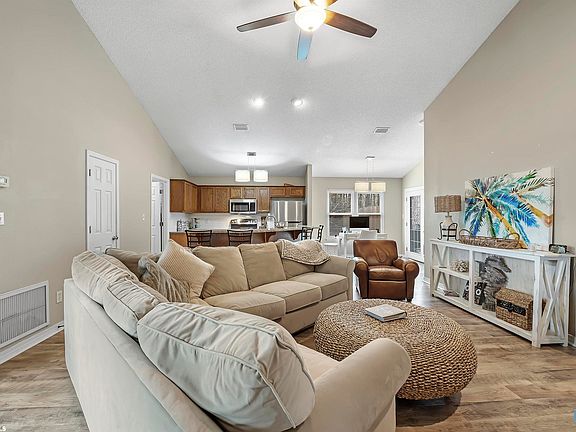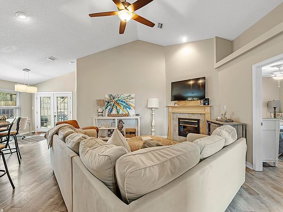 Charming 3 bedroom 2 bathroom brick home nestled in the southwestern corner of Beaver Creek. The home is located in an X flood zone - it has never flooded! High impact doors and windows were installed in 2022. The home features an open, split floor plan with a cozy electric fireplace in the den. A roomy kitchen with granite countertops overlooks the den, which is nice for entertaining. The covered patio offers a shaded area while enjoying the large fenced in backyard. The home has had many updates - new AC unit 2017, stainless steel appliances installed 2017, new grinder pump 2017, new hot water heater 2019, interior painted 2020, LVP flooring installed 2020, new fence 2020, new roof 2021, new tile shower in primary bathroom 2021. Beaver Creek subdivision allows long term rentals and has a neighborhood pool that is within walking distance to the home. It is conveniently located to shopping, restaurants, nature trails, Orange Beach Sportsplex, Orange Beach Middle School / High School and minutes from the beautiful beaches! Come see this beauty for yourself!