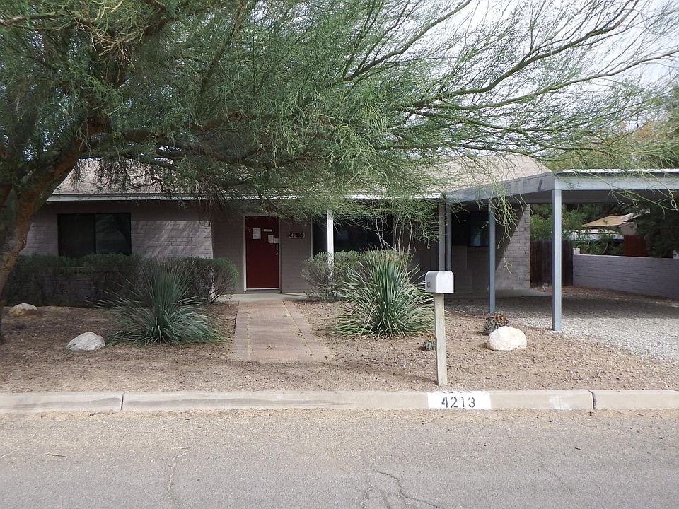 This ranch-style home is 1,626 sq. ft., and has 3 bedrooms and 1.5 bathrooms. The finished tiny house/studio in the back is 250 sq. ft. and also has a full bath and soaking tub. In the main house, the kitchen features a new sink and faucet, new gas stove, and new stainless refrigerator. The full bathroom has a dual vanity. A new HVAC system was installed in 2022. Outside are a covered back patio, attached carport, and xeriscaping in yard for easy maintenance. Located a couple blocks from Alvernon Park and Bike Avenue, and close to area schools. Convenient to I-10.