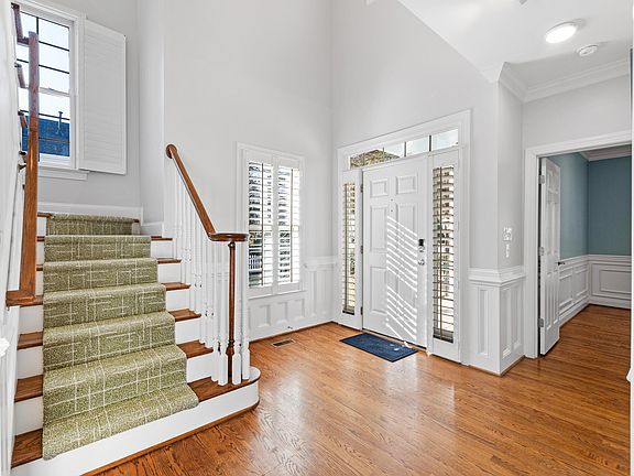 Welcome to one of the prettiest homes on one of the prettiest streets in Bedford! Reminiscent of the rich charm and timeless beauty of Charleston, this home is truly move-in ready with its abundance of recent improvements, too many to list here. A sampling of the enhancements recently completed include the freshly-painted exterior and interior, the addition of a large screened porch, the continuation of hardwood flooring upstairs, three remodeled bathrooms, an encapsulated crawl space, and an extensive landscaping project that included sodding the entire property, the addition of shrubbery, fencing and hardscaping. Immediately upon entering you are greeted by the warmth of natural light that follows you throughout the home. On the main level you'll find a large guest suite, a formal dining room, a sun-drenched two-story family room and a kitchen with a large breakfast bar, granite countertops, tile backsplash, and updated stainless-steel appliances. From the kitchen you can take the backstairs to a huge bonus room that could easily serve as an office or a fourth bedroom with its sizable closet and ensuite access to a shared bath. The door at the top of the stairs creates the privacy expected with a bedroom. The 2nd-floor primary suite, which sits at the opposite end of the hall, is the perfect retreat boasting cathedral ceilings, a private balcony, and a spa-like bath with dual sinks, soaking tub, walk-in shower, and water closet. The neighborhood amenities are also truly exceptional, offering resort-style pools, a well-appointed clubhouse, top-notch tennis/pickleball courts, scenic walking trails along the Neuse River, and several playgrounds and parks an easy stroll away. Also nearby are several dining options, multiple gyms, nail shops and pet spa only minutes from your doorstep! The charming Town Square and the Shops of Bedford provide a gathering place for family and friends to enjoy weekend music and other activities as well.