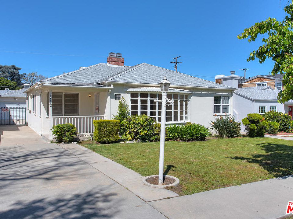 This charming home located South of the Blvd in a highly sought-after area of Sherman Oaks sits on a spacious 7,008 +/- sf flat lot. Featuring a formal living room with an architectural ceiling, cozy fire place and bow window overlooking the front garden, dining room, eat-in kitchen, 2 bedrooms, 1 3/4 baths and a family room also with a fireplace that includes knotty pine paneling and French doors leading to a covered back patio and private yard with fruit trees perfect for outdoor gathering and al fresco dining. Lovely touches include original hardwood floors, laundry room, California basement and detached garage easy to convert to an ADU. Sitting on a pretty tree-line street this is a wonderful remodel or new construction project. First time on the market in many years.