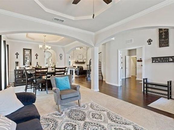 Beautiful 5 bedroom 4 bath home in highly rated Prosper ISD. Oversized lot with modern details throughout. Home is illuminated with abundant natural light. Kitchen boasts center island, granite countertops, stainless steel appliances, and generous cabinet-counter space. Master suite is in the rear for privacy and features a sitting area. Grand master bath offering double sinks, garden tub, standalone shower, and walk-in closet. Spacious pool sized backyard with covered patio and privacy fence perfect for entertaining. Just steps away from exceptional community amenities including expansive park, basketball and tennis courts, a state-of-the-art fitness center, and a resort-style pool. Delight in easy access to highways. Just minutes away from the PGA HEADQUARTERS OF AMERICA along with major shopping, dining, & entertainment destinations. Must see!