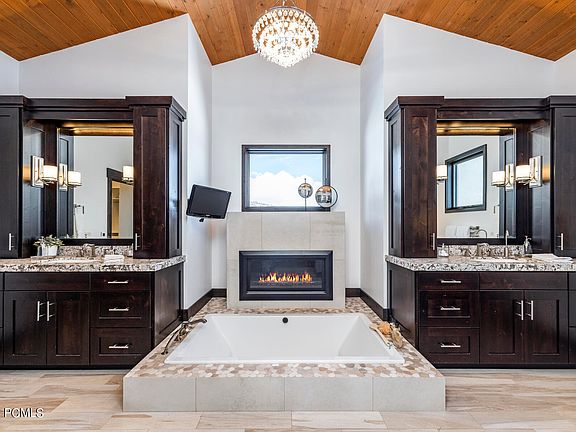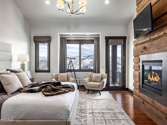 Located in the exclusive gated enclave of Moose Hollow, this exceptional custom home has been meticulously designed for both flow and functionality, ensuring a luxurious living experience. The open main level boasts hickory hardwood floors and an abundance of doors and windows that frame captivating mountain views. Step onto the expansive covered east-facing deck, which creates an idyllic setting for outdoor entertaining in the shade. The kitchen is truly a masterpiece, featuring a cozy fireplace and a Viking appliance suite, complete with a warming drawer and double dishwashers. Additional highlights include a U-Line under-counter ice maker and a Thermador built-in espresso maker. The hidden gem though is the extra-large butler's pantry, nestled between the mudroom and kitchen, boasting multiple roll-outs, a microwave, and a second refrigerator. The main level is complete with a stunning master suite, offering a private Juliet balcony, expansive walk-in closet with washer/dryer and fireplace. Completing the main level is an office, half bath, laundry room, great room, and dining area. The lower level is fantastic for entertaining, with wet bar, gym, second laundry room, family room, flex room (perfect for storage, mini-bunk room, or office), half bath, and three en-suite bedrooms. Every detail on this home was thoughtfully considered. The powder room & bedrooms all have extra sound insulation, the mudroom & full baths all have heated floors, & every closet has built-ins. The four-car attached, heated garage has built-in cabinets, drain & an oversized door for boat or RV storage. Central air conditioning & infinity furnace with 4 zones keep temperatures comfortable year round. Easy access to private Moose Hollow trails, schools, shopping, and Salt Lake City.