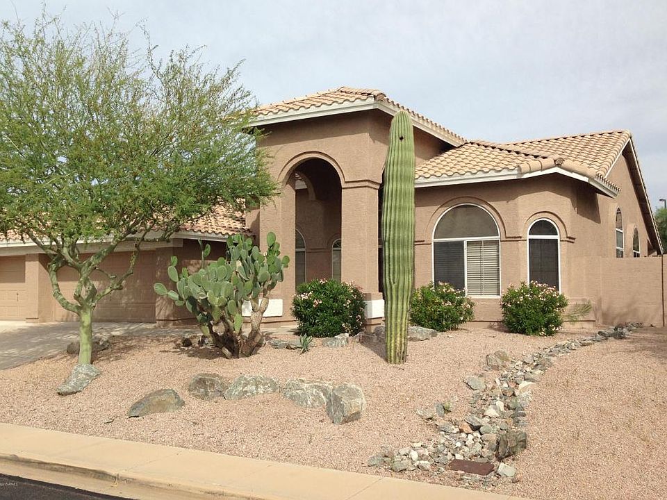 Single level, 3 bd 2 ba plus large den/office. New tile and carpet throughout. Kitchen updated in 2014 with new cabinets, granite counters, lighting and appliances; eat-in breakfast nook plus counter and custom island. Fresh paint inside and out; 2 fireplaces, wet bar for entertaining and abundant storage. Master bath updated with custom travertine shower, granite counters, new cabinets, lighting and designer closet system. French doors open to spacious, covered paver patio with artificial turf and low maintenance raised planting beds surrounding sparking pool and patio. 3 car garage with epoxy floors, cabinets, new garage door opener. Move-In ready home on corner lot backs to open area. Red Mountain Country Club Membership options; golf, recreation, social (rmrcc.com).