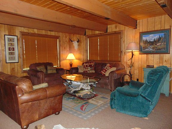 Great cabin feel with 4 bedrooms and 2 1/2 bathrooms on the Island Park Village golf course. Propane fireplace in living room, mud room entrance with laundry facilities, back covered deck, and back covered balcony. 2 car detached garage. Sits on 0.34 acre of land and backs to the Island Park golf greens. Yard has automatic sprinkler system. Paved subdivision roads with winter access.