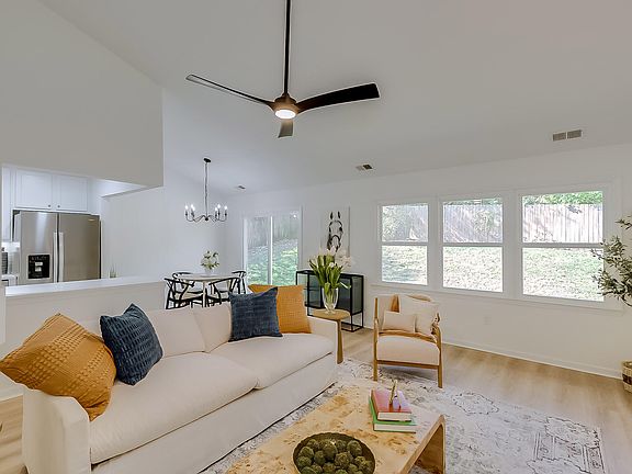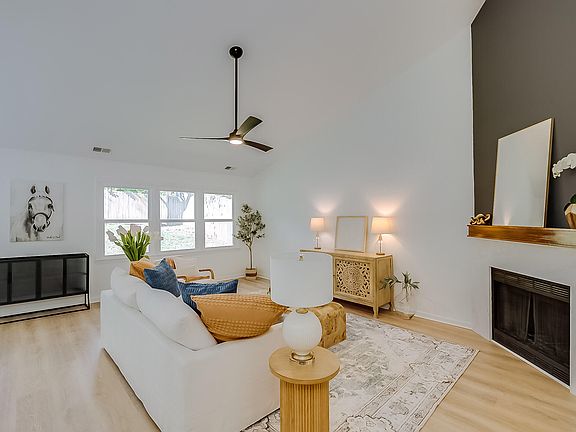 Completely renovated 3 bedroom, 2 bath ranch in popular Wyndham Down! This home features a covered front porch, foyer, vaulted great room with wood burning fireplace, updated windows and eat-in kitchen. Tons of upgrades include new interior and exterior lighting, ceiling fans, kitchen with designer cabinets, quartz countertops, stainless appliances, under cabinet lighting, designer tile backsplash, rear entry door, LVP flooring throughout, fireplace mantle, added electric over fireplace for TV, quartz fireplace surround, smoothed all the textured ceilings, HVAC, water heater, bathroom vanities, plumbing fixtures, hardware, added entry nook for coats/bags, bathroom mirrors, updated landscaping, exterior and interior paint, new front door knocker, pressure washed exterior and other miscellaneous repairs/improvements. Enjoy a truly move-in ready single level home, complete with a back patio, fenced backyard and 2 car garage located on a cul-de-sac. Convenient location close to shopping, schools, restaurants, the airport and more.