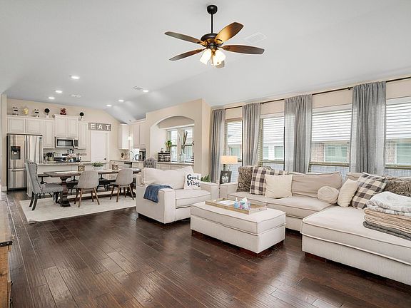 Beautifully Crafted 4-2-2 in Crowley! Modern finishes, property features wood flooring upon entry. Office or 4th bedroom with double glass doors. Modern kitchen with granite countertops, stainless steel appliances FRIDGE INCLUDED! Large master with sitting area, separate shower and tub with dual sinks. Spacious spare bedrooms. Covered back patio, fenced back yard. Close to schools, highways and shopping!