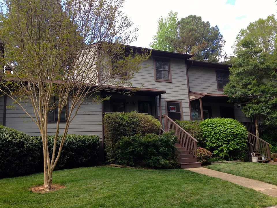 Loaded with extras, in excellent condition, and located on Lake Johnson, it is perfectly situated for a professional, couple, or roommate sharing. It is convenient to NCSU, Centennial Campus, Cary, I-40, I-440, downtown Raleigh. This two-story 1,1440 sq ft condo has 2 large master bedrooms, each with walk-in closet(s) and its own fully updated bathroom. Double-paned, low-e windows throughout. New carpet upstairs. Hardwood floors downstairs, with elegant half-bath, dining room, bright kitchen with appliances including large front loader washer & dryer, a large great room with gas log fireplace, and built-in cherry solid wood custom cabinetry, overlooking a spacious wooden deck with a storage room attached, and large green lawn. The condo has three built-in solar tubes for abundant lighting throughout. Extra storage space underneath stairs, and pull-down attic is both floored and shelved for even more storage! Nice, quiet neighborhood adjacent to Lake Johnson Greenway. Pets welcome with deposit and monthly rent. This newly renovated, squeaky clean and spacious condo is priced below those of comparable size and location. Available now and sure to go soon. Please call or text