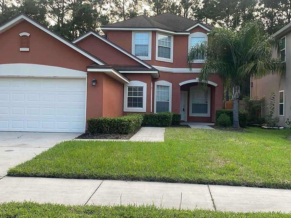 Welcome to this beautiful, maintenance free pool home in the desirable Victoria Lakes neighborhood! Offering over 2,800 sq ft of thoughtfully updated living space, this residence features 4 spacious bedrooms, 2 full bathrooms + 1 half bath, and modern comforts throughout. Step inside to fresh paint, sleek flooring, an open concept floor plan, and stylish fixtures that create an inviting atmosphere. The kitchen boasts granite countertops, black appliances, and abundant cabinetry all flowing seamlessly into the family area for ease of entertaining. The primary suite is a peaceful retreat complete with a walk in closet and ensuite bath with separate shower and tub. Upstairs you'll also find three additional bedrooms and an oversized bonus/loft room ideal for guests, homework, or a home office. Outside, your private oasis awaits: a gas heated inground pool and hot tub, fenced backyard and a screened lanai make this a perfect space for relaxing or entertaining with weekly pool maintenance included. Two car garage, central air & heating, and community amenities like clubhouse, jogging paths, playground, and RV/boat storage add to the convenience. Pet friendly with approval (restrictions apply), this home is minutes from I 295, River City shopping, and a short drive to military installations and the airport. Residents also enjoy the Resident Benefits Package (RBP) which includes renters' insurance, HVAC filter delivery, and more. Owner has a pool company that services the pool. 12 month lease Property inspection 3 months after move in and then at 6 months.