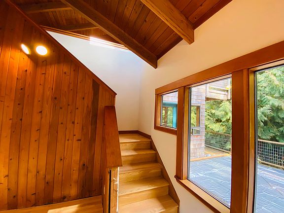Situated on 6 private acres in the forest, Sitka Vista is a dream home. An L-shaped deck extends along two sides of the home, allowing you to take in the majestic nature views from the vantage point of a treehouse. Upstairs boasts high ceilings with incredible wood craftsmanship. In addition to the two bedrooms, bathroom and kitchen on the main level, there's a surprise: stairs up to a spacious loft with the best views of all! The loft can be use as an additional bedroom, work space or lounge area. The kitchen was custom designed and built with cherry cabinets and soapstone counters. The eating area has windows on three sides and is a delightful place to dine. The main level of the home leads downstairs to a daylight basement that feels like its own apartment with two bedrooms, a full bathroom, kitchenette and living room with two exterior exits. Perfect for two related families or parents-in-law to have their own space but still connected. With ample room for parking and trails to nearby Coal Creek, you will love life on Anderson Road. This neighborhood is sought after and this opportunity to nestle in for a 1+ year lease won't last long! Baseboards have been reinstalled. Cats allowed on main level + loft. Dogs allowed on lower level, which is set up like its own daylight basement apartment with kitchenette. Parking on site and Wi-Fi included. Tenant to pay electric, water and trash directly to utility companies.