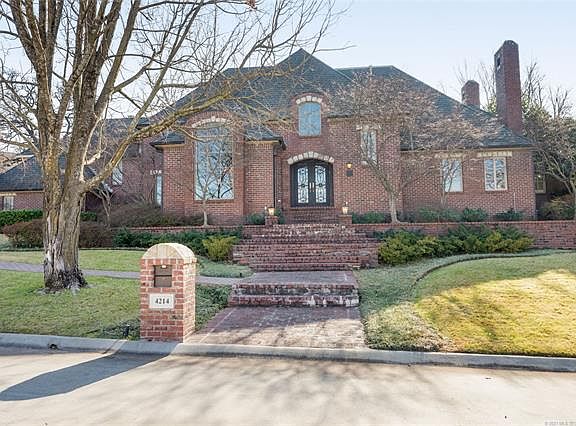 Classic full brick home nestled on a 0.74 acre lot in South Tulsa's established Hunters Pointe. Updated kitchen, master bath, newer hardwood floors. Formal dining & living, eat-in kitchen open to great room. Study with fireplace. Pool Bath. Master suite opens to the back patio; double sided fireplace with a huge master bathroom. Three spacious bedrooms upstairs, each with ensuite bath. Large game room over garage. Gunite pool, tiered yard with tons of trees and outdoor living. Whole home generator.