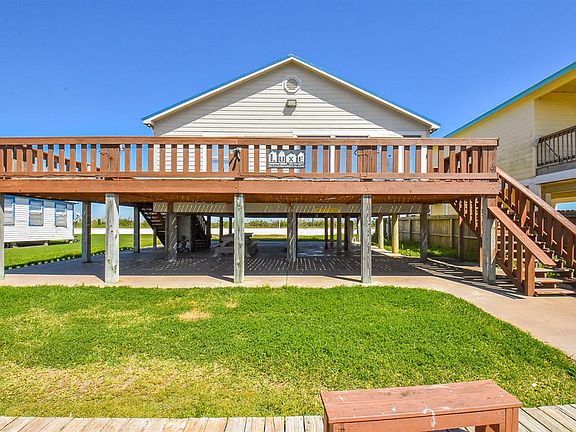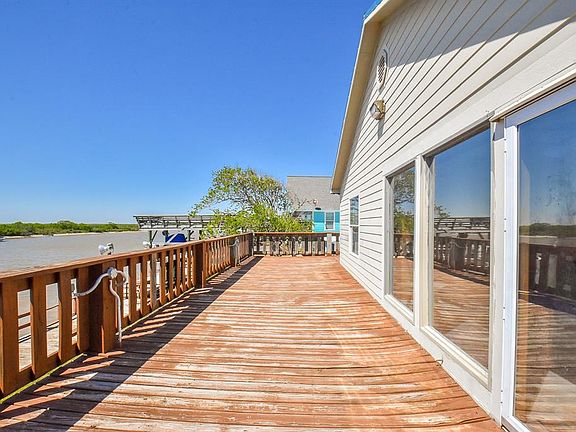 This riverfront home is ready to be your weekend destination and your summer getaway! Spend your days enjoying your sun room, entertaining in the shade under the house, or out on your own pier! Equipped with two large mounted fishing lights and two benches on the pier, take advantage of river life and fish day or night! This property does have vacation rental history available, if you are interested in a great investment opportunity! Beach and Matagorda Bay access are only a 5 minute drive! Come out to see the gorgeous view from this 3 bedroom 2 bathroom home, it is being sold fully furnished!!
