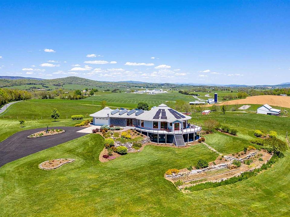 Every once in a while, a property comes along that simply takes your breath away. Perfectly situated on 10 acres in Rockingham County, this fully custom, 360 degree round home (the double hurricane package produced by Deltec Homes) is designed to take full advantage of the setting so you can revel in the beauty of the Shenandoah Valley. You can see the sun rise and set without moving from your living room. The homeowners spared no expense outfitting the house with radiant heated tile floors, Italian sinks, marble countertops in the bathrooms, custom Mill Cabinetry, 10kW solar panel array, solar hot water heater, and a wraparound deck. Don't miss the loft or the gardens, the orchard and vines, and don't miss out on this masterpiece.