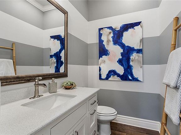 This house is stunning from the second you pull up in the circle driveway and make your way through the front door. Walk past the formal dining room on one side and the study with french doors on the other. Follow the gorgeous wood floors to the bright, airy and spacious living and kitchen area that is perfect for family gatherings and entertaining guests. Eat casually at the kitchen counters or pull up a chair in the breakfast nook. As you walk through the kitchen to the wet bar, don't forget to notice the dreamy walk-in pantry. Behind the kitchen you will find two bedrooms and two full baths. Around the corner you will find the huge master bedroom and bathroom with His and Her closets. Walk upstairs and the fun begins! Start with a showing of a private movie in the theater room and then watch the big game with your favorite people in a room perfectly designed for entertaining with tvs, surround sound, a bar and unique Razorback touches throughout the room. Its the perfect mix of class, comfort and fun!