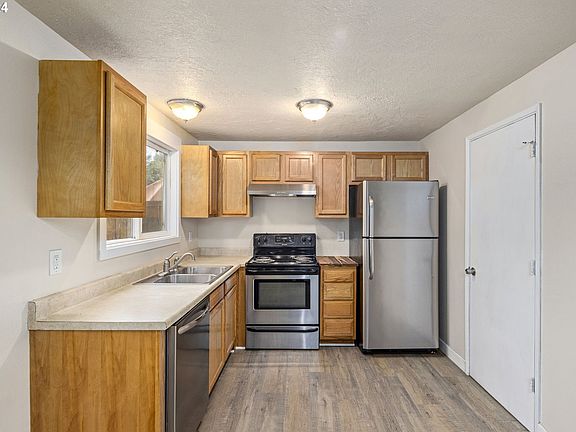 Under $350k!! Discover this charming home that has been thoughtfully updated throughout! The kitchen showcases modern cabinetry, a refrigerator, range, and dishwasher. This residence features zonal heating for optimal comfort and includes 3 spacious bedrooms and 1.5 bathrooms. You'll also find a gas hot water heater conveniently located in the garage, along with hookups for a washer and dryer. Step outside to enjoy a generously sized, private backyard with a delightful patio, perfect for outdoor gatherings and relaxation. Located in a prime area, this home offers easy access to I-5, Highway 30, downtown Portland, local parks, the Columbia River, and shopping options. This is a fantastic opportunity you won't want to miss!