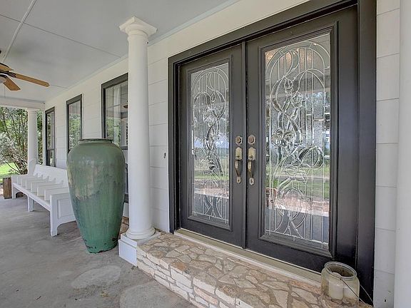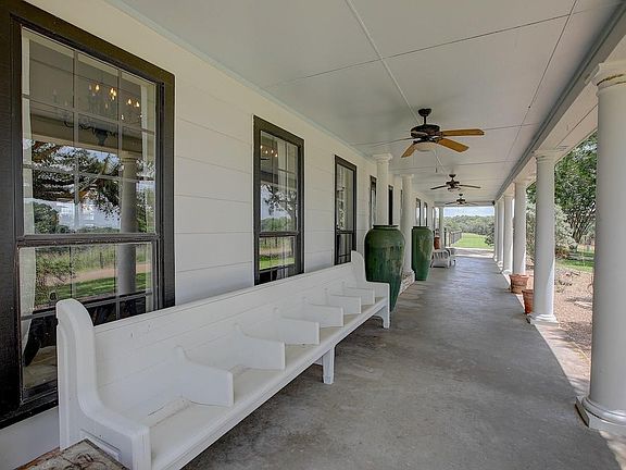 In the heart of the Rutersville area of La Grange, with sweeping hilltop views, you to more than enjoy the country sunsets. A rich history is embedded in this land and was once the location for the first institute of higher education in Texas. The Rutersville College was found, 1837, by Martin Ruter. Also, a Texas Historical Commissioned marker states this property is the site of the first Methodist Annual Conference in Texas. With Oak/Pecan trees and a pond, the Austin-stone home has been enjoyed over the years by happy families. Front lead-glassed double doors, you will enjoy the high cathedral expanse, floor-to-ceiling windows, a rock wood-burning/gas fireplace, Saltillo tiled flooring and a spacious loft bedroom. A split floorplan with the Living/Dining/Kitchen living space area open to the sunroom that also serves as a huge Dining Room and with access to the huge open-aired Pavilion covered outdoor space.