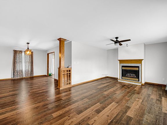 Freshly remodeled Ranch style bungalow featuring new flooring, fresh paint and recently updated bathrooms. 3 bedrooms and a large size Primary Bedroom with en-suite. Warm and cozy fireplace with a HUGE YARD just under 3/4 or an acre.Great location with Kankakee Valley High school in walking distance.