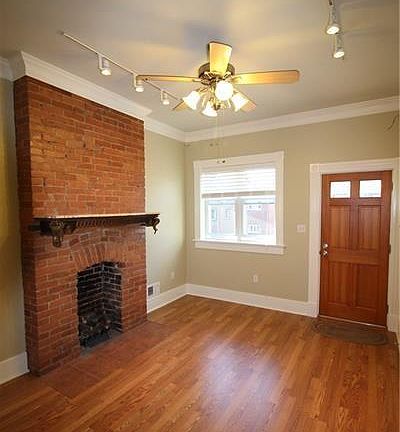 Welcome to 4214 Post Street in Lawrenceville! This updated townhouse offers beautifully exposed brick throughout the home with plenty of natural light. No detail has been overlooked. The living room has a decorative fireplace leading into a fully equipt kitchen. Follow the exposed brick stairwell upstairs to the welcoming master bedroom. Across the hall is an unexpectedly HUGE master bathroom. A custom-built design with ample space - a must see. Upstairs boasts two more rooms with a great view over Lawrenceville in one and a beautiful view of Children's Hospital in the other. There is additional storage in the attic. The basement has a washer and dryer and a remodeled full bathroom. The back patio has an incredible space to sit back and enjoy a barbecue with friends and rain barrel gutters for your summer garden! There is one off-street parking space in the back with a huge shed for storage. Seconds from Children's Hospital and a short walk to Butler Street. No Pets.