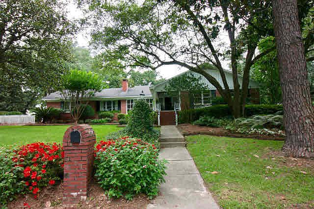Wonderful 4/3/1 home on large, beautiful lot in great Country Club Estates location. This property has a great floor plan with very spacious rooms. Enter the foyer from an open front porch and you will find a graciously sized living room with a beautiful large, light filled bay window, built ins and a fireplace. Lovely large dining room perfect for entertaining opens on to a courtyard with rose garden. Open kitchen and den with gas log fireplace and built in book shelves flows to the courtyard on one side and adjacent deck on the other side. Study with built ins and double sided fireplace is a cozy spot for relaxing. Big bonus room with full bath makes a perfect play room. Master bedroom with its own sitting space, office, and bath ensuite is split from other 3 bedrooms and bath plus half bath. Hardwood floors, granite counters, fenced yard, generator, carport, sprinkler system on well, exquisite plantings, and a gorgeous huge oak are added features.