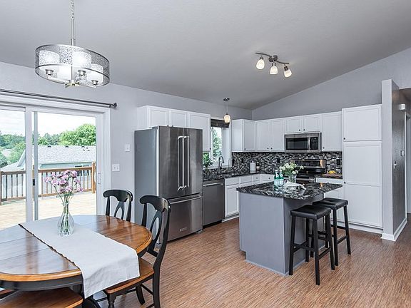 Just move in and enjoy this totally updated and remodeled home! Fantastic kitchen w/ SS appliances, island, granite, & dining w/ access to the huge deck! Main floor features 2 nice sized bedrooms w/ pass through bath access, white painted woodwork, updated paneled doors & laminate bamboo flooring! Finished LL w/ family/rec room, bedroom w/ walk-in closet & private full bath w/ tile surround! Newer siding & roof make this home turn key and ready for you today!