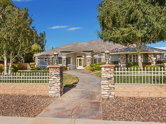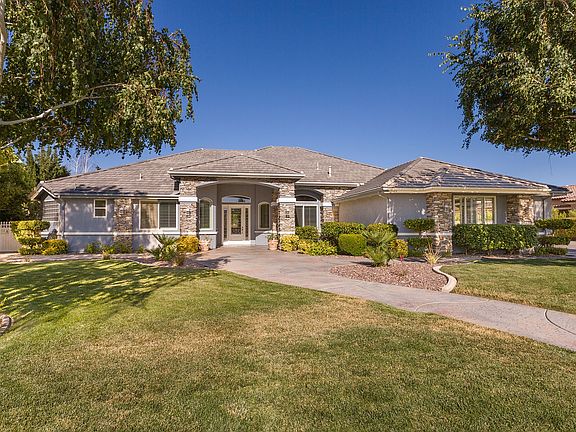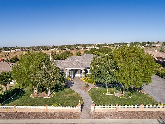 Price Reduced! Desert Rose Oasis!! Rare custom built single story pool home sitting on close to an acre. Extensive stamped colored concrete leads to a gorgeous stained glass entry door. Interior features 8 Ft doorways with solid wood doors, crown molding throughout, plantation shutters on every window including french doors and garage window. Open kitchen features Viking appliances, hand trowel interior walls, all hardware and faucets are in matching brushed nickel down to door handles and hinges. Granite throughout with beautiful cherry wood cabinets including wet bar with beverage refrigerator. Split floor plan, the master has his and hers walk-in closets and its own bath with separate shower and soak tub. Built in surround sound in family room. Oversized 3 car garage with boat deep (30 foot) on single garage side. Expoxy flooring in garage with attic space and pull down stairway. Large attached stuccoed patio faces 40x17 Inground pool and spa , built in barbecue island, gas fire pit. Extensive RV parking with RV hookups and dump station behind gate. Low maintenance landscaping with orchard and garden area. No HOA No Mello Roos.