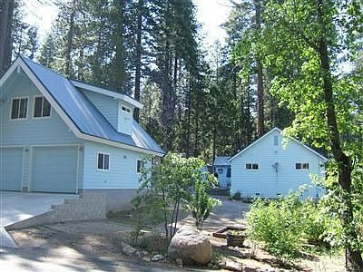 West Village gem is waiting for your family. On a huge double lot you find the cutest cabin you can want. Great cabin and a 2 car garage with area for future living space above, stairs in and small porch. Owner will include plans for 2 bedroom apt. over garage. Tile flooring and counters, garden window and light oak cabinets, gas range in kitchen. Heat the cabin cozy with propane heater and pellet stove. Hardi Board Siding, Trec entry and even a small sitting area outside. Dual paned windows keep the cold out. Electrical wiring and plumbing was updated with a remodel of the cabin.Laundry room with sink and counter and large storage closet in entry way. Lots of parking on this lot, and all this is so close to the Village of Shaver Lake and shopping and eating. Only a short drive up to China Peak and check out all the winter and summer sports you can do in this area. This cabin is owner occupied so please call and give the owners a few minutes if possible. Dog is very friendly.