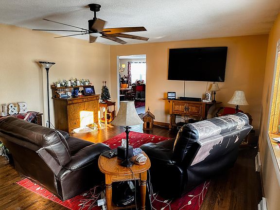 Your new home for 2023! This property features four bedrooms and two bathrooms. Hardwood floors on the main level. Large kitchen area and plenty of room for dining space. Decorative gas fireplace with blower fan to keep the dining area cozy and warm. Downstairs family room has a dry bar area. Egress windows allow for extra lighting in the downstairs rooms. Insulated two car garage. Step thru the sliding glass doors to the backyard and covered deck. Vinyl fenced yard which includes a cute shed with its own covered deck area. Listed by Kim and Jake Blaine.