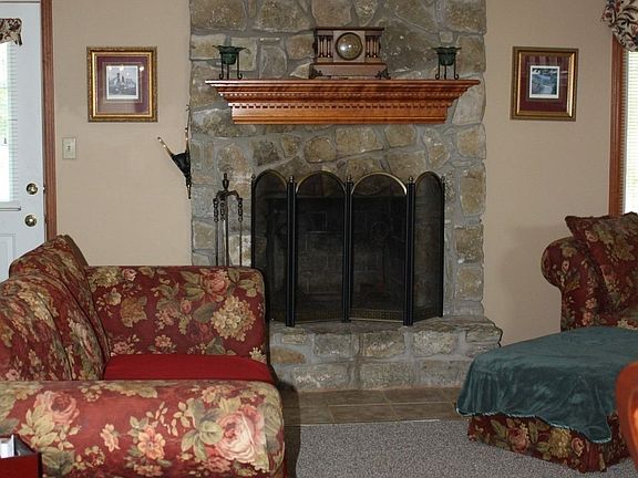 Nice 3Br/2BA brick and stone ranch over full basement which has exterior access. This home features an open floor plan with true great room highlighted by large stone fireplace, all atractively set on over 5 acres minutes from town.