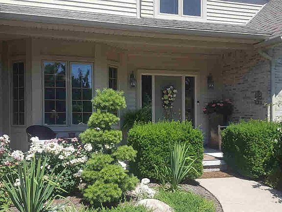 WELCOME HOME to a stunning 4 bedroom, 2.5 bath home. Beautiful kitchen includes a granite island, raised panel oak cabinetry, corner sink with double window, Stainless Steel GE Cafe 5 burner gas stove with griddle and electric oven, Amana refrigerator and KitchenAid dishwasher. Dining area with vaulted ceiling. Sliding door opens to stamped cement patio overlooking Lake Erie. Sitting area by the double sided gas fireplace which also faces the living room. Inlaid hardwood floors. Pella windows with inside blinds. First floor master suite with separate shower and jetted tub. Bonus studio over garage! Garage includes racks/shelves/cabinets in work area along with a potting area. Extras: Built in speakers, 6 on main floor included (radio/disc player NOT). Motion detected security system, sprinkler system and professionally maintained landscaping. A must see!!