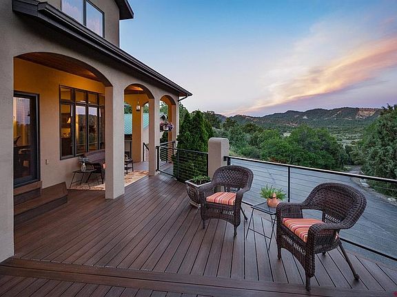 Welcome to Horse Gulch Vista in the heart of Southwest Colorado. This spacious luxury estate sits on nearly twenty acres of pristine mountain landscape with hills of juniper, gamble oak, and towering ponderosa pines. Backing up to over five hundred acres of BLM public land, and minutes from hundreds of acres of city-owned land, the home offers a serene and private setting full of outdoor recreational activity. The near 5800 square foot home is unparalleled with five bedrooms, five bathrooms, and multitudes of additional living space. As you approach the home you are immediately taken by the gorgeous façade and Tuscan-style design. The front of the home boasts a large deck with modern cable railing and expands the entire length of the home from east to west. Perfect for entertaining friends and family or enjoying the areas famous Colorado sunsets. Once through the front door you are welcomed by a state-of-the-art kitchen spanning nearly twenty-five feet. With custom cabinetry, granite countertops, and an island extending nearly the length of the entire kitchen; another great feature for entertaining! Directly off the kitchen is the decadent dining room with its own wood burning stove. Adjacent to the kitchen and dining areas is the immaculate and jaw dropping great room–featuring floor to ceiling windows with gorgeous south facing views of the Horse Gulch ridge-lines and towering, vaulted ceiling with exposed trusses both adding to the Colorado rustic flair. Also on the main level is the spacious master bedroom accompanied with an elegant ensuite bathroom consisting of a soaking tub, double vanity, two-head walk-in shower, water closet, and large walk-in closet. Off of the suite is access to the deck–which boasts leads to the hot tub. Leading up to second level is the grand staircase which leads to three of the four spare bedrooms along with a loft office/sitting area. The rooms are spacious in size, one including a ensuite guest-room with walk-in shower and makeup vanity. The other two upstairs bedrooms are serviced by a full-sized double vanity bathroom. The loft area is something not to be missed. Overlooking the great room below and looking out the awe-inspiring wall of windows, you will be sure to occasionally take a moment to reflect and appreciate all the house has to offer. The tour isn’t finished yet–on the ground and basement level you will find a large recreational and living area with room for billiards, table tennis, and other recreational activities. A built-in wet bar, living/TV area, and the fifth and final bedroom and bathroom are all extra bonuses to the space. Aside from the recreational area is the incredibly sized heated workshop/storage area. Ideal for hobbies, tool and outdoor gear storage, and other storage of any toys to enjoy the Durango lifestyle. Just past the workshop you will find the attached two-car garage. Extra interior features of the home include powder room on the main level, laundry room with washer, dryer, and spare refrigerator, and a mudroom with custom closed cabinetry–perfect for storing coats and gear. On the near twenty acres also sits a three-stall horse barn and fenced pasture. This estate is ready for a horse lover and perfect for extra vehicle and recreational vehicle storage. Located only 10 minutes to Mercy Hospital, 20 minutes to Durango-La Plata Airport, and 15 minutes to downtown Durango. Come see this extraordinary Horse Gulch property today! Be sure to check out the 3D tour, property video, floor plans, and property brochure.