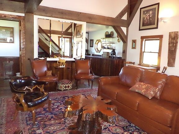 Find Character in this Country Estate. Building materials were carefully assembled on site for this home from a Reclaimed Carriage House. Adding to the character of this home is the land and a Pond. Pavilion has a bedroom and bath, 12 horse stable with fenced in area just waiting for you to enjoy. More land is available. This property is adjacent to the U. S. Forest. 2-10 Home Warranty Included. Easy commute to Watkins Glen, Ithaca, and Corning.