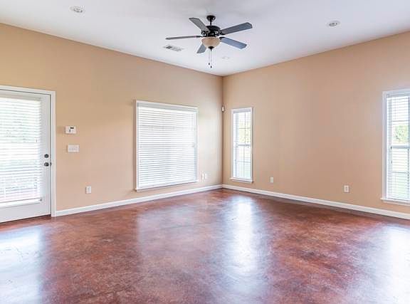 Pretty 3BR/3BA cottage with open floor plan & stained concrete floors. 9 ft ceilings, front porch, fenced backyard.