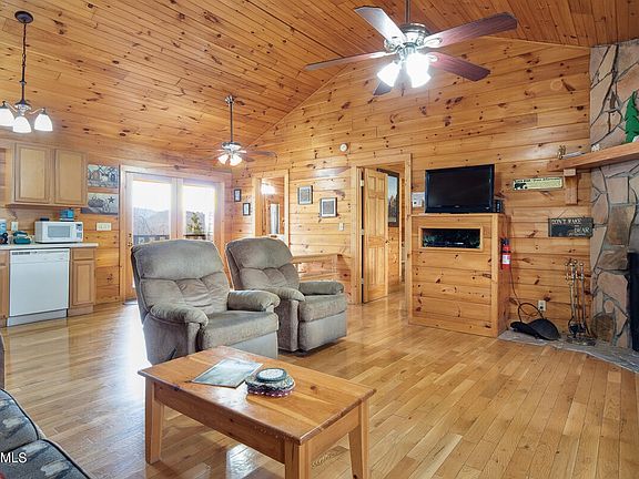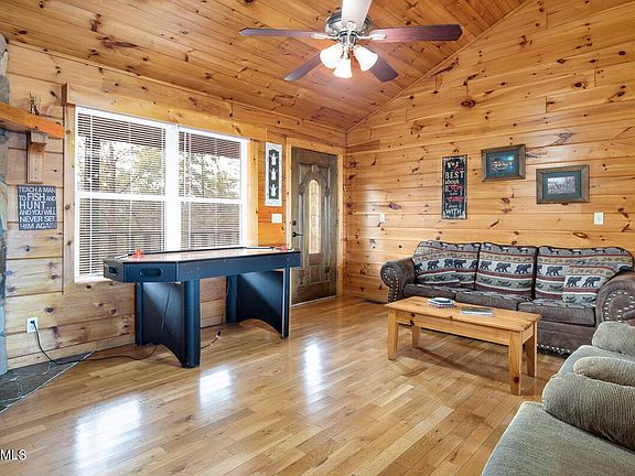 EXCELENT RENTAL OCCUPANCY! Charming one level ''Mountain Memories'' log cabin in the Great Smoky Mountains. Master w/ king bed & full bath w/ large jacuzzi tub. 2nd bedroom w/ queen bed & full bath. Beautiful hardwood, cathedral ceiling, covered porch w/ hot tub, kitchen, dining area, cozy great room w/ wood-burning fireplace & game table. Private setting on 1.61 acres w/ fantastic views of English Mountain. HVAC only 1 year old & all furnishings & washer/dryer included. Meticulously maintained & to be sold ''as is'' with no repairs.